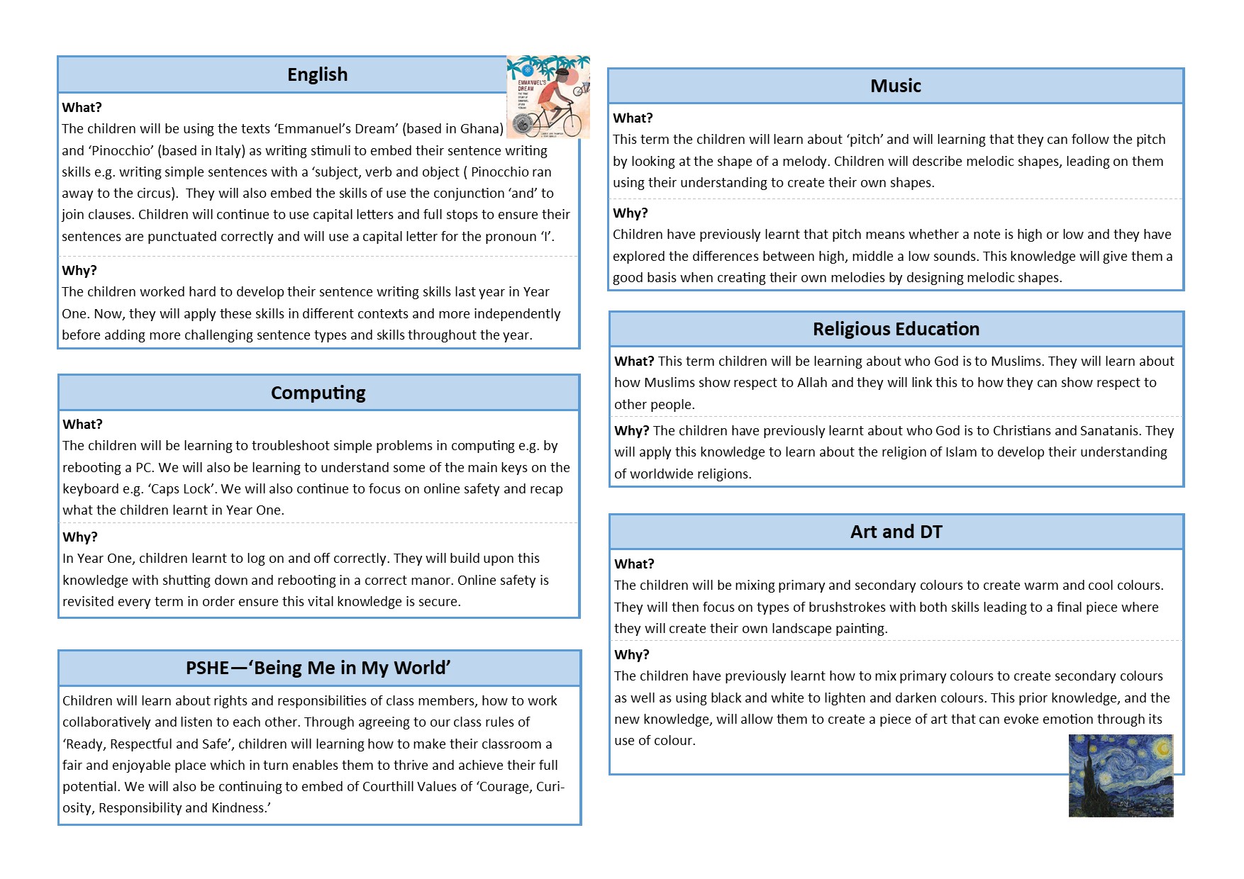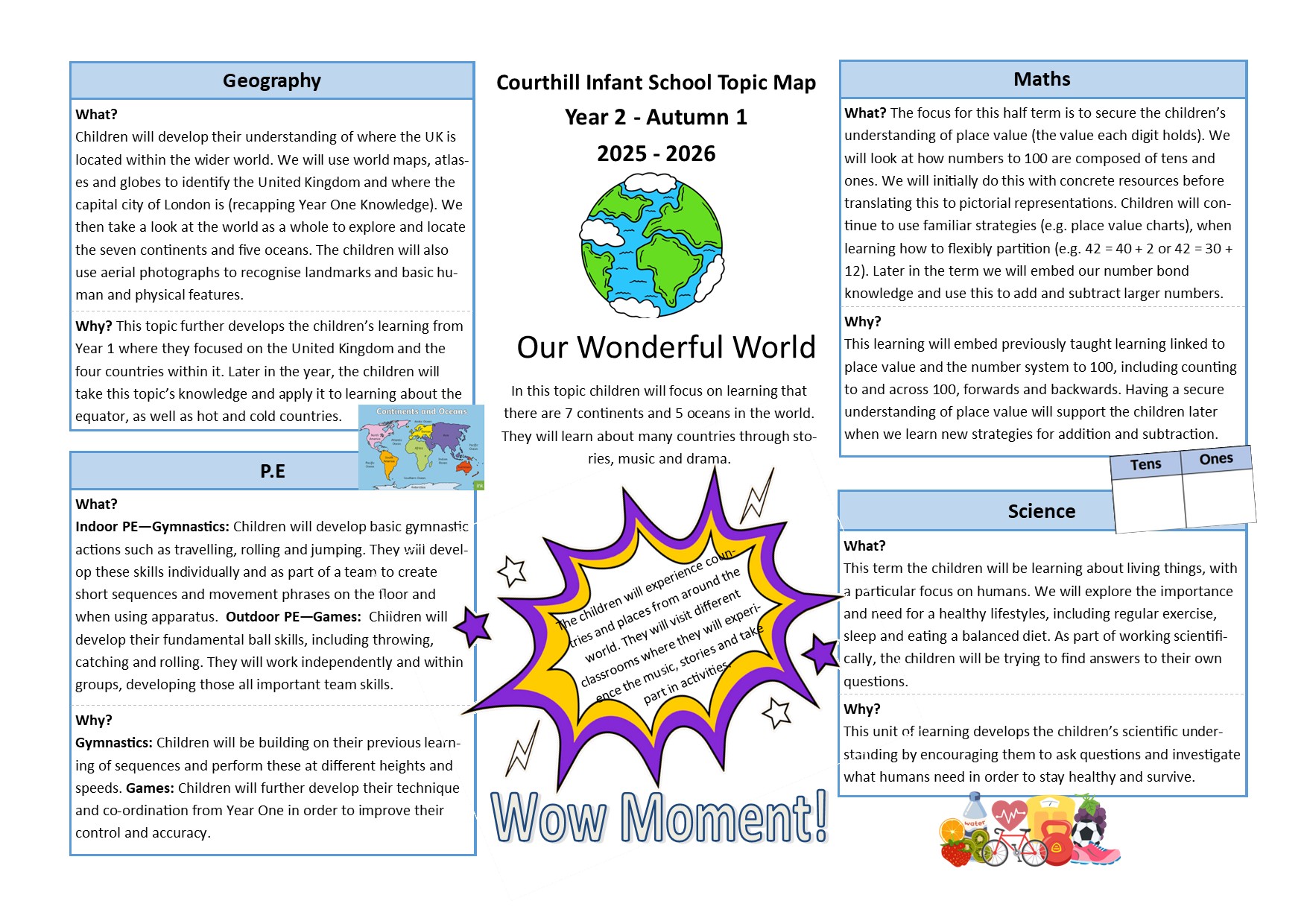 At Courthill Infant School we deliver an exciting and enriching curriculum that inspires them to be lifelong learners. Our aim is to ensure that your child gets the best out of these early stages in their school life. On this page you will find general information about Year 2 but also ways you can help at home. At the bottom of the page you will find learning updates and topic webs explaining what your child will be doing every half term.