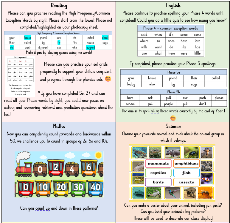 Welcome to Year One. We are delighted to be teaching your child this academic year and to deliver an exciting and enriching curriculum that inspires them to be lifelong learners. Our aim is to ensure that your child gets the best out of the early years in their school life. On this page you will find general information about Year One but also ways you can help at home. At the bottom of the page you will find learning updates and topic webs explaining what your child will be doing every half term.